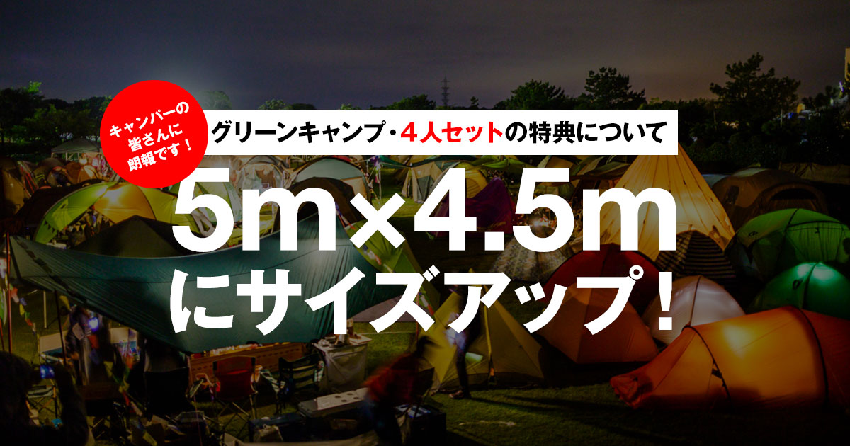 今回から、グリーンキャンプの4人セットに限り、キャンプサイトの区画面積を拡大します。